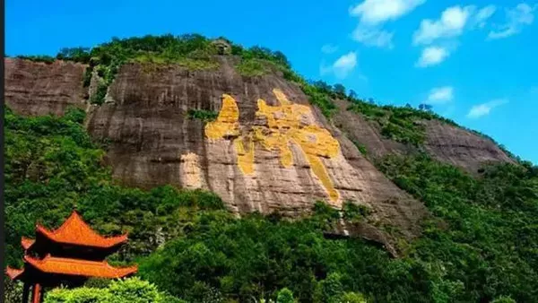 都嶠山金佛大字,系趙樸初先生絕筆,高108米,寬88米,堪稱世界奇觀。