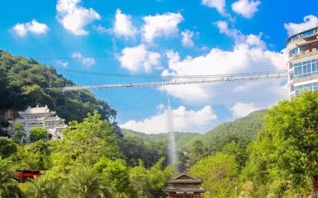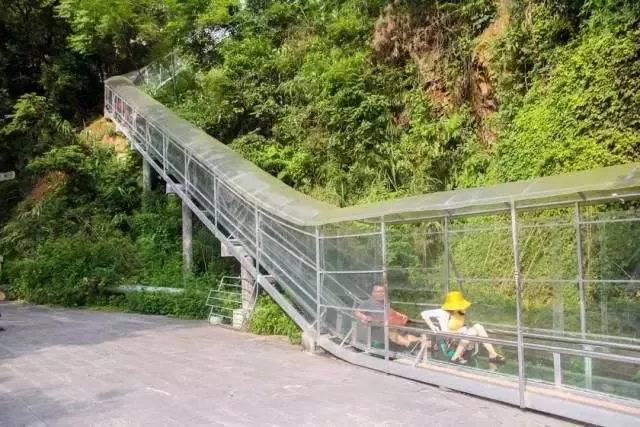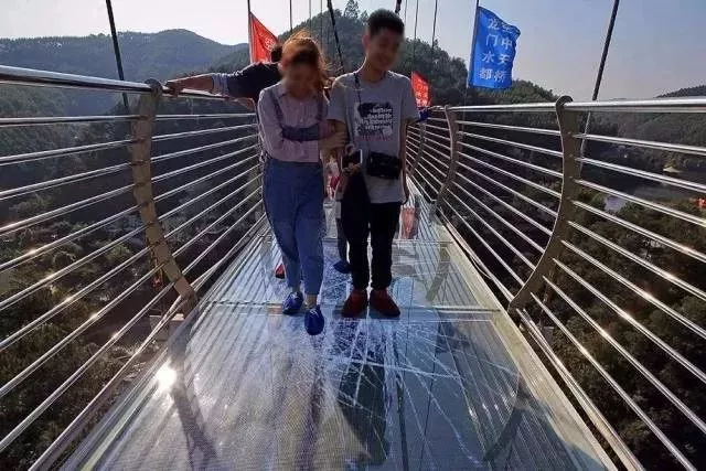 接著到高空玻璃吊橋,全橋總長有288米,距離地面高度大約有92米,可以說目前是廣西最長的玻璃吊橋啦。站在玻璃橋上,可以看到峽谷風光盡收眼底,還能以獨特的視角感受龍門水庫之景。