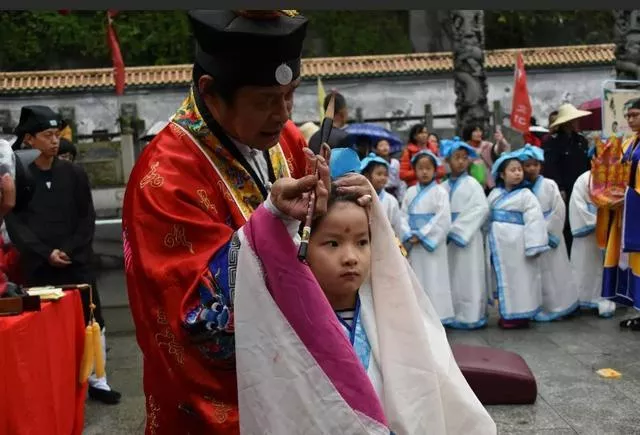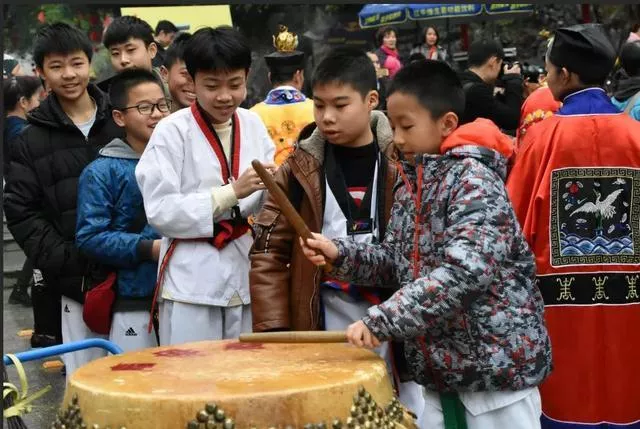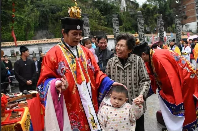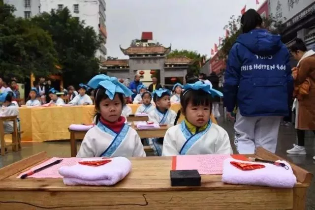 道教法師帶領(lǐng)著小學(xué)童們開筆破蒙