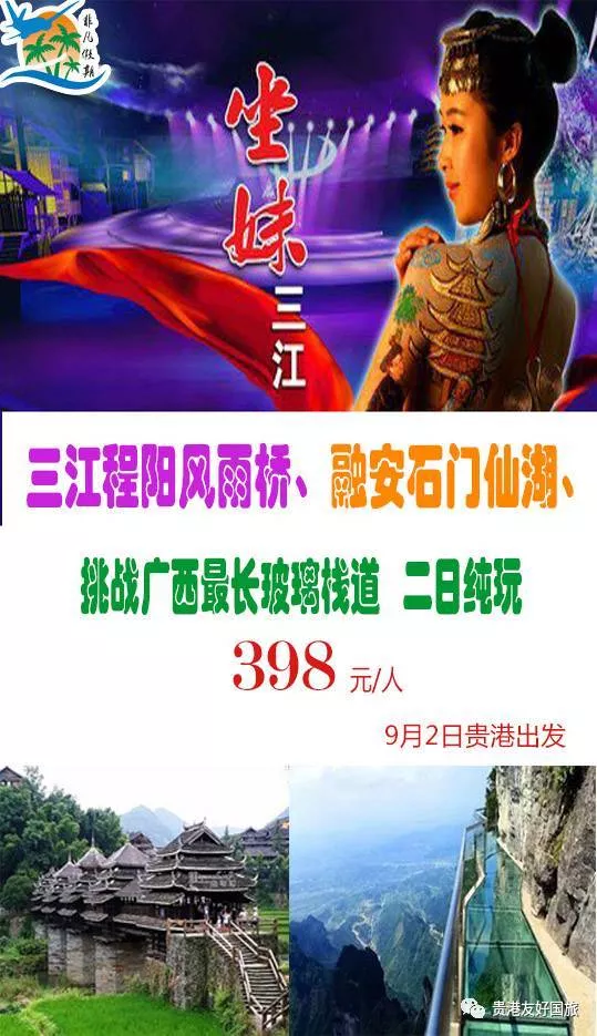 【9月2日出發(fā) 挑戰(zhàn)廣西最長(zhǎng)玻璃棧道!】三江程陽(yáng)風(fēng)雨橋、融安石門(mén)仙湖、玻璃棧道純玩2日游