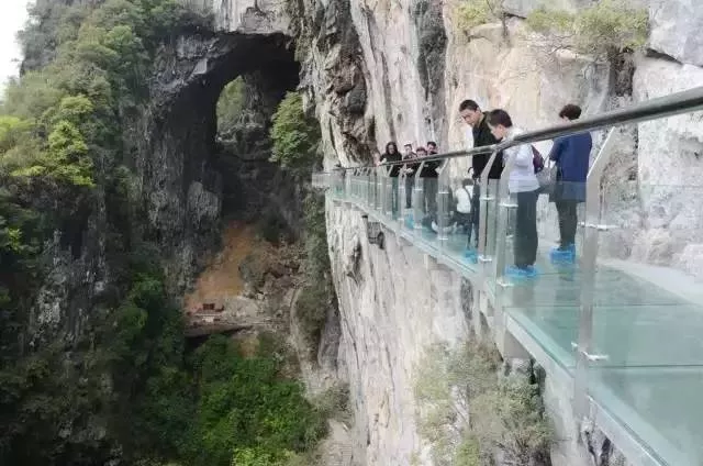 空中玻璃橋和3D懸崖玻璃棧道、網(wǎng)紅拍照地“天空之鏡”構(gòu)成的懸空環(huán)形游覽線路,通過(guò)與景區(qū)內(nèi)的中天坑、地下暗河、溶洞、清流團(tuán)寨等景點(diǎn)遙相呼應(yīng),美不勝收。