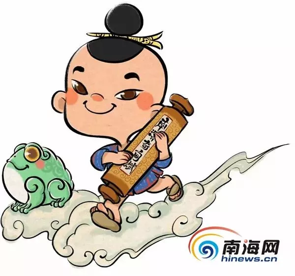 陜西歷史博物館唐妞設(shè)計師二喬先生介紹,南溟子的設(shè)計創(chuàng)意出自《南溟奇甸賦》,以海南島黎族原生態(tài)人物造型為基礎(chǔ),提取海南五指山海洋、熱帶風(fēng)情、融入海南民族元素和傳統(tǒng)人物造型,結(jié)合中國童子畫的特點,演繹出一個活潑、可愛、富有正義感充滿好奇心的南海之子動漫組合人物形象,由其開啟探索南海文明、海南文化之旅。