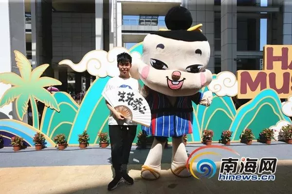 “南溟子”設(shè)計師二喬先生和“南溟子”卡通人物合影。 南海網(wǎng)記者陳望 攝