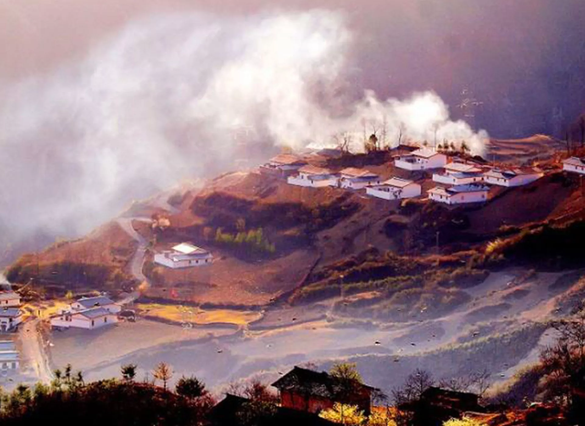 這里山脈層巒起伏,綠草如織,低矮的盤松虬勁有力,風(fēng)光秀麗壯觀。