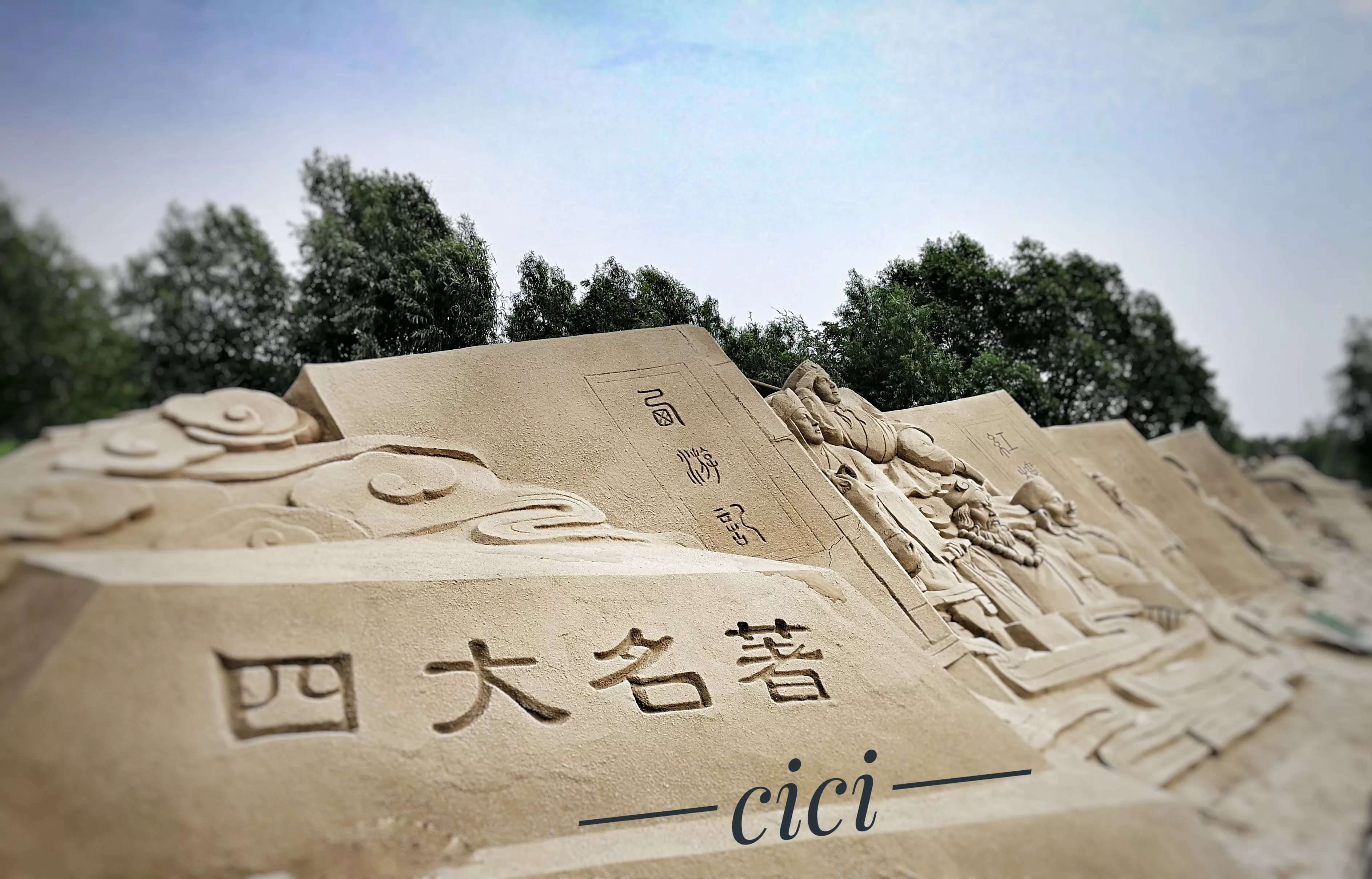 各種形態(tài)的沙雕其實很精美,有四大名著,古代故事里的人物,還有小朋友喜歡的動畫片里的人物,熊大熊二和光頭強(qiáng)。清明上河圖、三字經(jīng)金字塔等等。景區(qū)還利用了2000多年以來由于海潮季風(fēng)作用形成的40多米高的岸邊沙丘,雕刻了37米高的沙雕大佛。所有的雕塑做工非常的細(xì)膩大氣,人物栩栩如生。因為大家都坐小火車,對于兩旁的沙雕反而很少有人駐足了,私以為有些本末倒置了。