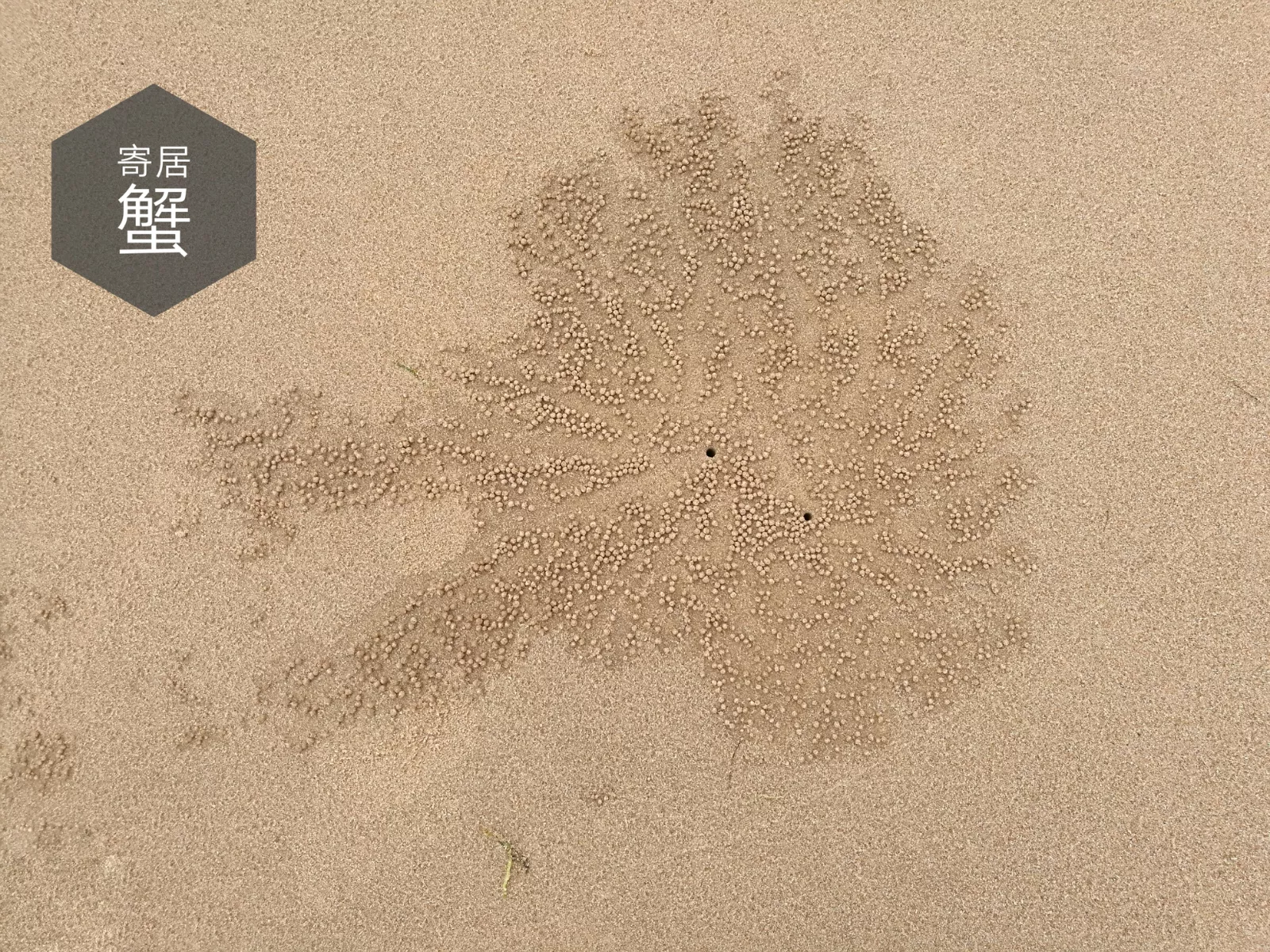 我走在沙灘上無意中發(fā)現(xiàn)海灘上有許多的圖案,像各種形態(tài)的花。走近一看,花的圖案是用無數(shù)個綠豆大小的沙球組成的,每個圖案的中間有一個黃豆大的小圓洞,仔細(xì)的看,不時會有綠豆大小的小螃蟹爬出來。我突然想起了曾經(jīng)看到的BBC紀(jì)錄片,里面就有這個場面,這種蟹叫寄居蟹。