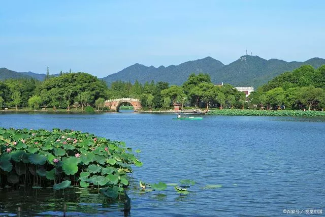 ①蘇堤春曉:蘇堤春曉是指一千年前北宋年間,大文豪蘇軾組織民夫用疏浚西湖時(shí)挖出的湖泥,在距西湖西岸500米處修筑了一條南北走向的近3公里的長(zhǎng)堤。并在堤上建有六座橋,使西湖東西兩片水域相通。堤上栽種桃樹(shù)和垂柳,每逢春季桃花盛開(kāi),柳葉翠綠,游人如織故稱(chēng)“蘇堤春曉”。