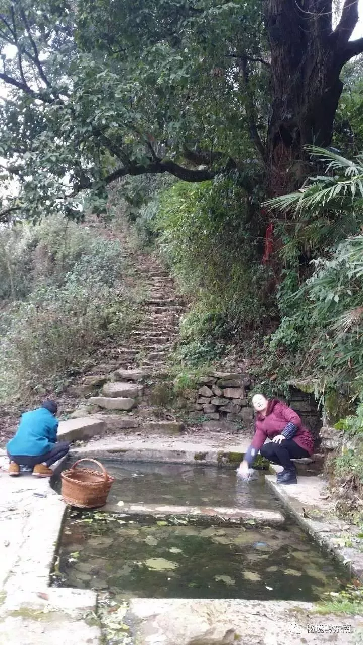 當我們沿著避開正在打水泥的進寨公路,沿著古驛道拾級而上,遇到一口大水井,一位老太太正洗衣服,水還不少,也很清亮,手捧涼水喝了起,清涼可口,甘甜無窮.老太太說,“這口水井很好,因水井在寨腳,下來挑不方便。大家都用自來水了,我還是喜歡這口井水,就常來這里洗衣裳!”說著說著,一位老頭子牽著牛,后面還跟隨兩匹馬,沿著古道下來。我們退到寬處讓路,一匹小馬駒不知是不好意思或害怕,不敢下來。洗衣服的老太太說,“不怕得,我們這里的牛、馬習慣了,不怕人的.可能看你們是外地來的客人,有些害羞”。放牧的老頭子吼道:“客人都讓你了,還不趕快走呢???”于是,小馬駒一邊嘶叫一邊奔跑著,穿過我們面前,趕上了前面的牛馬。