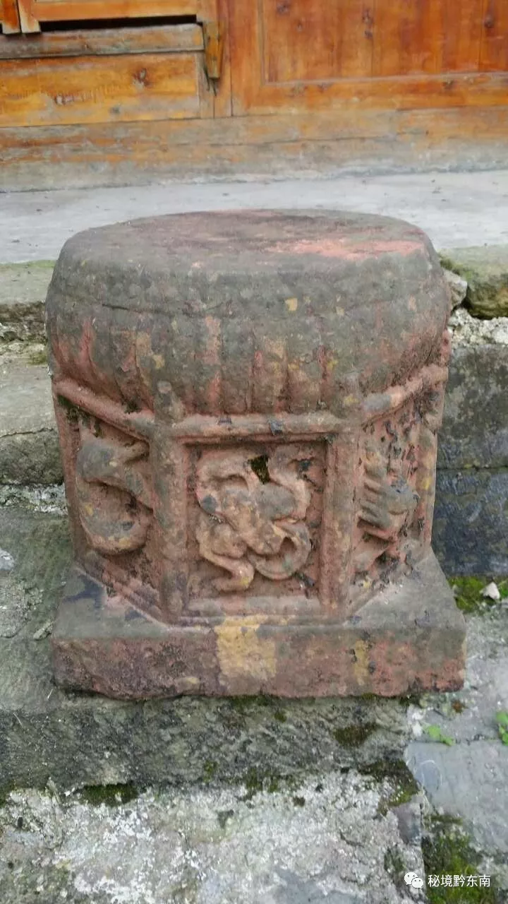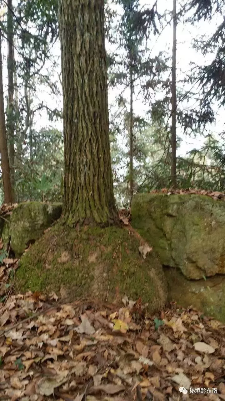 我們登上寨子,約三十余戶人家,坐落在山的二屯上。寨后是一遍風水樹,幾乎是常青闊葉林,郁郁蔥蔥。寨中有四、五株千年松柏,有七株千年紅豆杉,寨子制高點還有一株千年巖青岡樹,頗像一把巨傘,夏天人們常常在樹下乘涼和聊天。從幾夾雜在林中的老枯樹,看出這里的人保護生態(tài)的意識很強,沒有亂砍濫伐森林的現(xiàn)象。從遠處看不出石柜二屯上還挺寬呢!過去,聞名于黃平余慶、甕安一帶,富甲一方的鄧十萬家曾經(jīng)居住在這里.據(jù)傳說,鄧氏發(fā)祥有幾個版本。