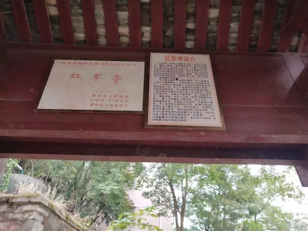 灌陽(yáng)縣文市鎮(zhèn)與全州縣咸水鎮(zhèn)五福關(guān)的戰(zhàn)斗,是紅六軍團(tuán)過(guò)廣西與桂軍展開(kāi)的兩次最大的戰(zhàn)斗,都犧牲了100多人,分別犧牲了一位紅軍團(tuán)長(zhǎng)。為紀(jì)念紅軍由文市渡口勝利渡江,1980年5月灌陽(yáng)縣人民政府將此亭改稱為“紅軍亭”,公布為縣級(jí)文物保護(hù)單位,并于1982年、2004年兩次撥專款進(jìn)行維修。