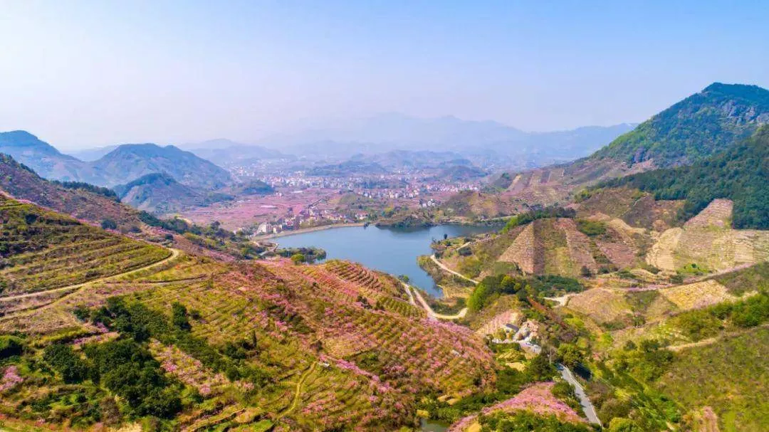 桃源村歲月靜好四面種滿桃樹小山坡只有勞作的果農和蟲鳴鳥叫的生氣