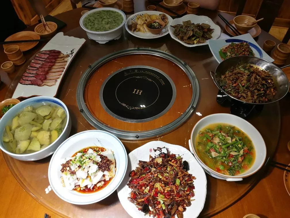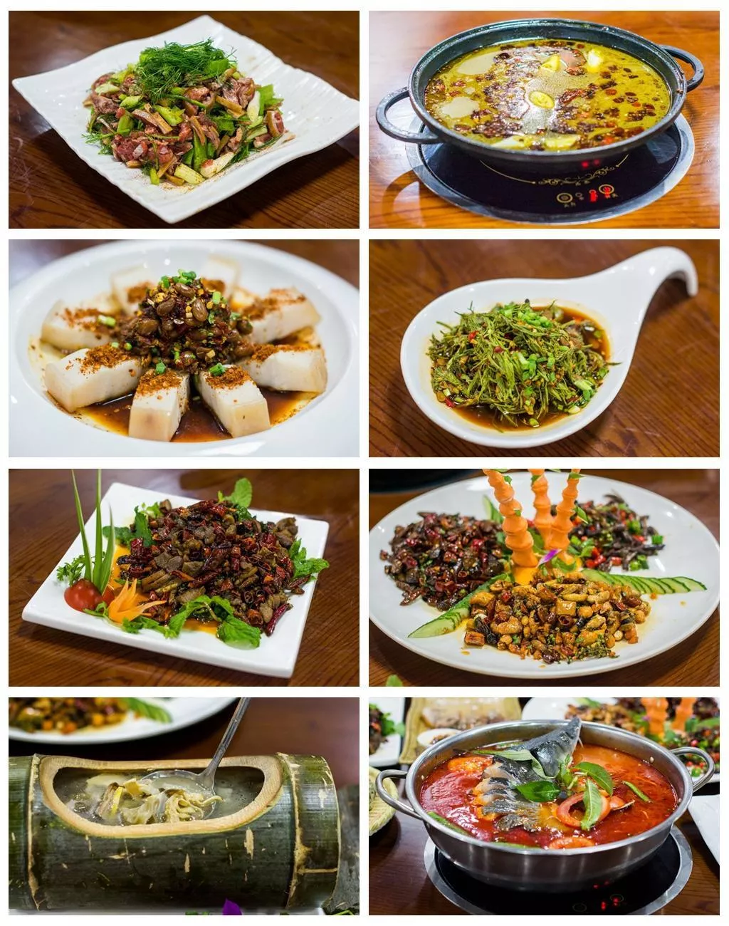 湯鍋羊癟、苗家古藏肉、丹寨韭菜根、昆蟲匯、茴香黑小羊、竹山珍、繡球竹花、酸湯魚、侗家腌魚、繡球竹花,每一個都是本地特色菜,無論是味道還是擺盤都很棒。
