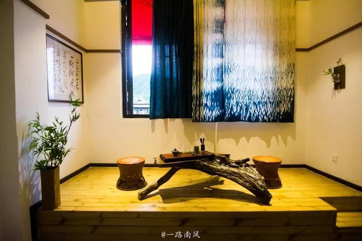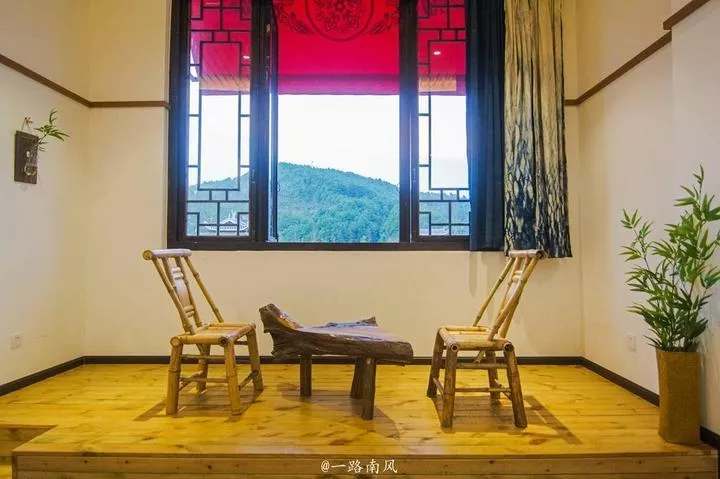 客棧的大堂擺放著一套傳統的中式沙發(fā),古風濃郁,墻上掛滿花紙傘,文藝氣息厚重。
