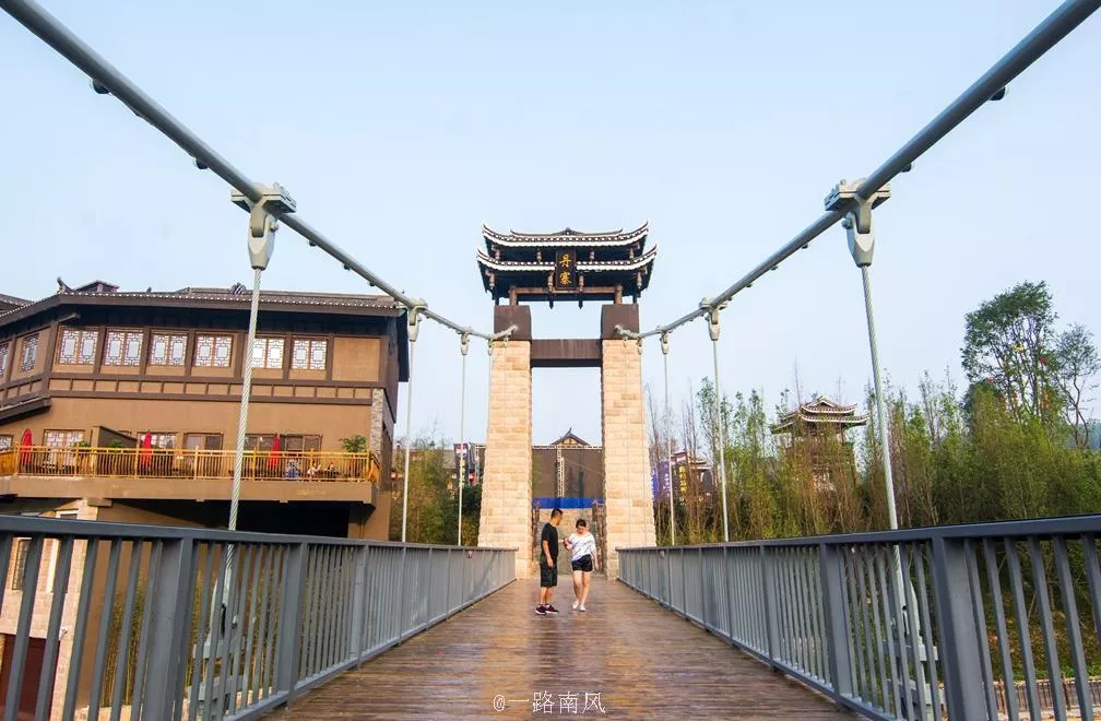 旭日初上,迎著清風穿行吊橋,對岸的草木香氣沁人心脾。吊橋的一邊是山水畫,一邊是小鎮(zhèn)風情畫。