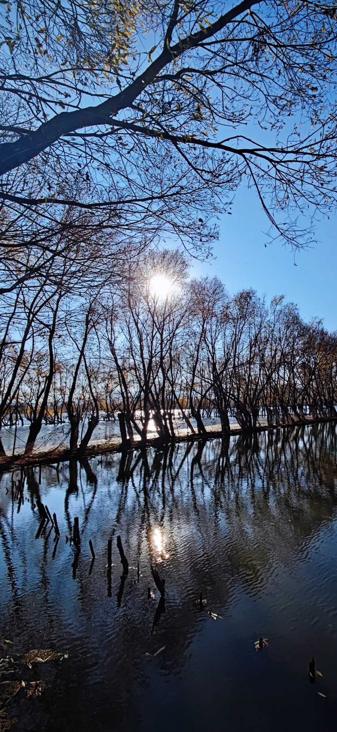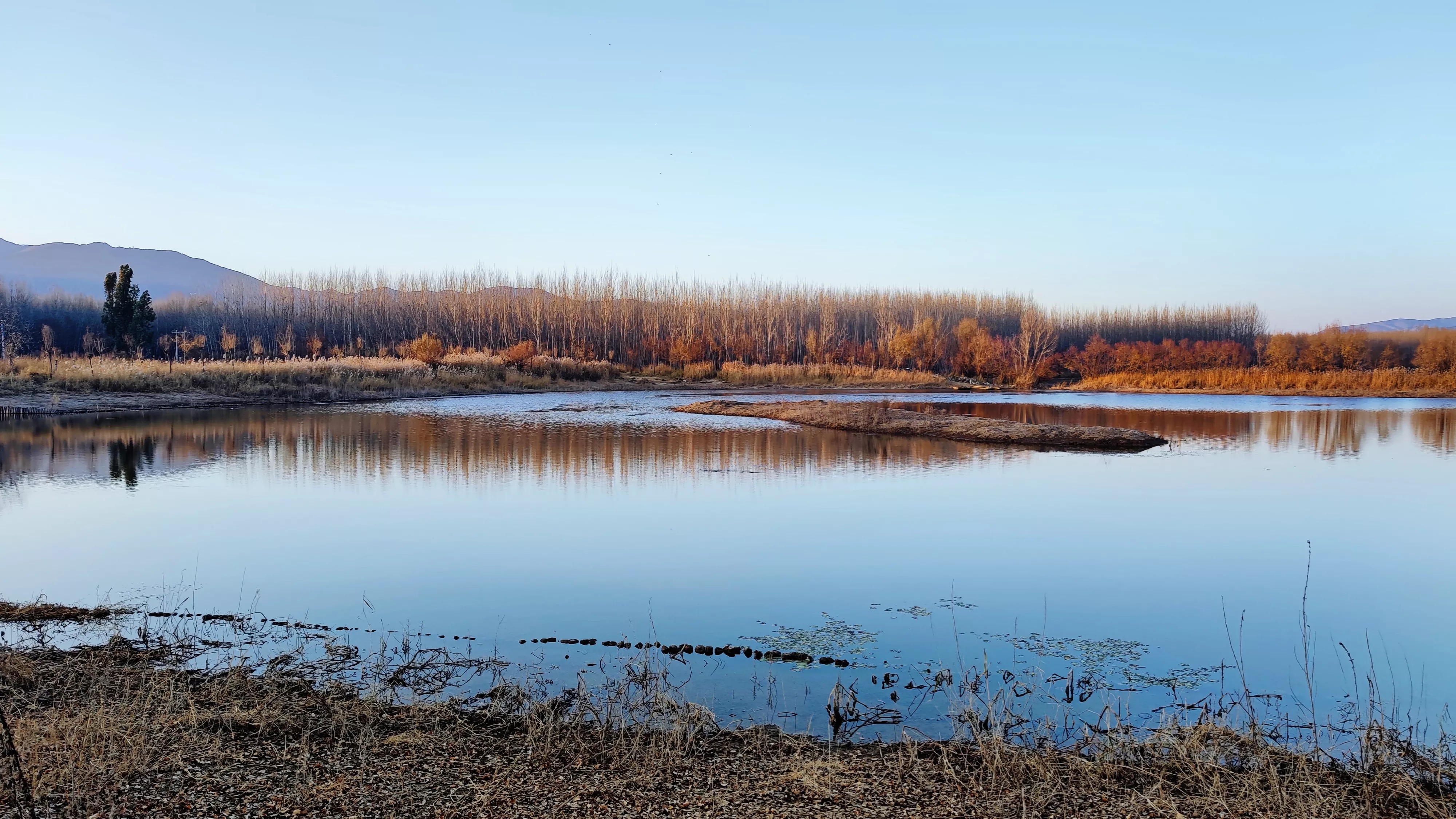 這里湖水清澈蕩漾,仲春時(shí)節(jié),藻花吐艷,游魚(yú)成群,各類(lèi)水鳥(niǎo)在水中追逐嬉戲,偶爾一陣風(fēng)來(lái),驚起鷗鷺一片,沿湖翠柳垂青,梨花帶露。秋天,柳葉金黃,一抹金黃映人深藍(lán)色的湖底,給人無(wú)限清爽與靜謐。夏季,河堤上鶯啼綠柳,湖邊蘆葦一片青翠,遠(yuǎn)山蒼蒼,湖水盈盈,使人感受與收獲與眾不同。