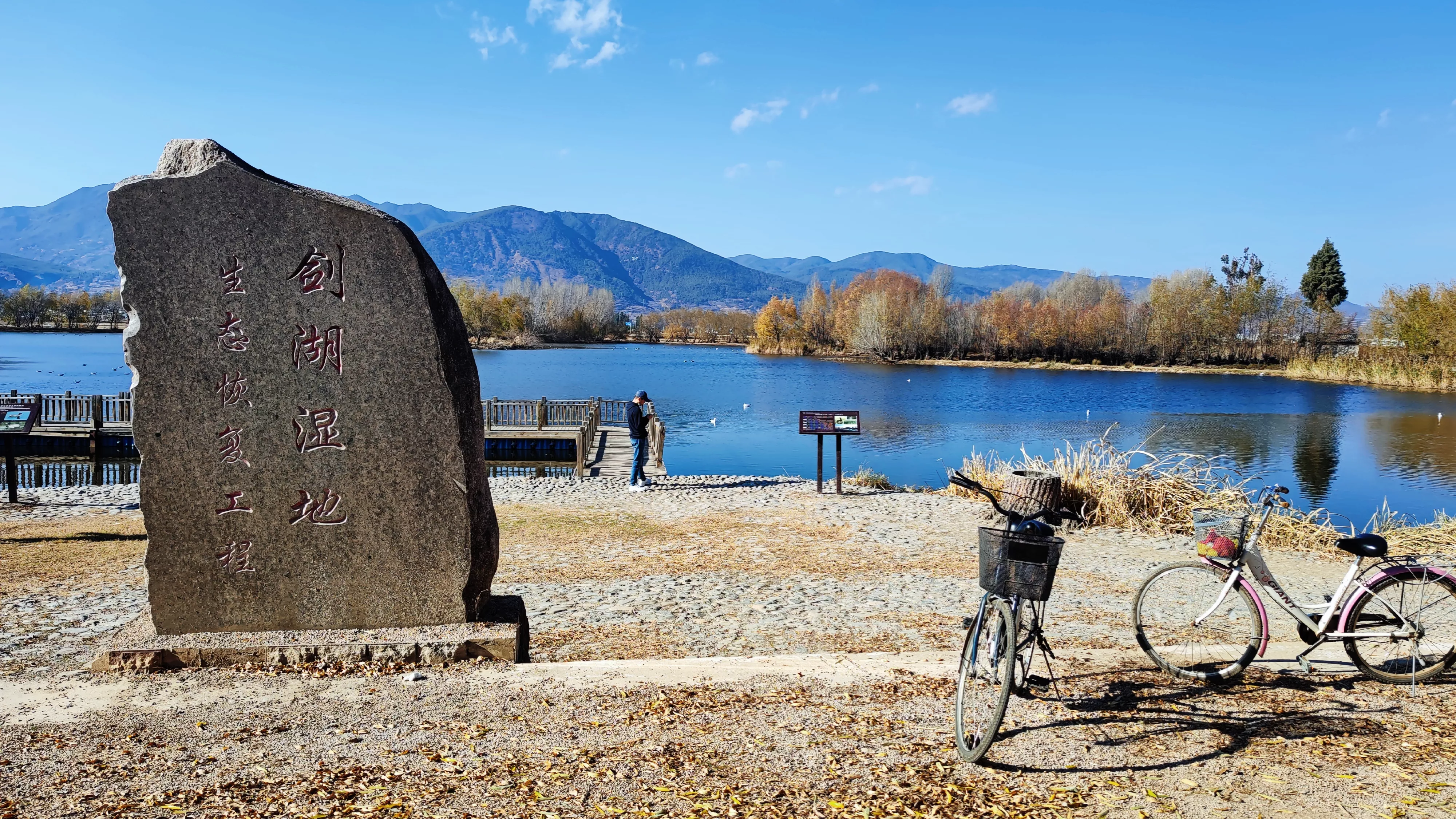 高原明鏡-劍湖濕地,麗江到此高速只需約一小時(shí)左右時(shí)間,到達(dá)劍川后214新國(guó)道旁進(jìn)入這條環(huán)劍湖公路可以直達(dá)濕地公園,對(duì)于自駕、騎行、或者徒步都是不可多得的地方,尤其對(duì)于攝影愛(ài)好者,早、晚湖畔的光影與色彩極為豐富,遠(yuǎn)處的山巒線(xiàn)條優(yōu)美,白族村落與田園風(fēng)光交織炊煙中若隱若現(xiàn),冬季聚集了成群候鳥(niǎo),是出作品的絕佳去處!湖邊暖陽(yáng)高照,湖風(fēng)溫潤(rùn),鳥(niǎo)鳴聲不斷,穿梭于林間小路徑直到湖邊走走,真是種非凡享受!