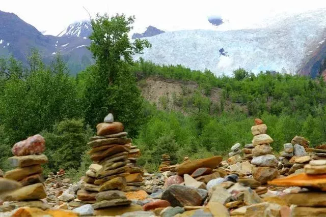 冰川下端是針闊葉混交林地,皚皚白雪終年不化,郁郁森林四季常青,到是一副壯闊的景觀。在這里,冰川、湖泊、農(nóng)田、村莊、森林等融會在一起,形成一幅自然和諧的畫卷