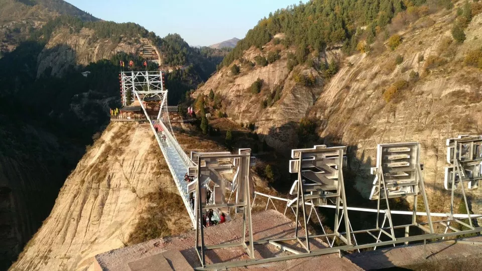 過(guò)了第一道玻璃索道后,有一道懸橋,這道橋比較長(zhǎng),但是并不是玻璃的,我估計(jì)應(yīng)該也是給游客練膽的,走在上面晃悠晃悠的,但是晃得幅度并不大,應(yīng)該也是一道適應(yīng)關(guān)卡。