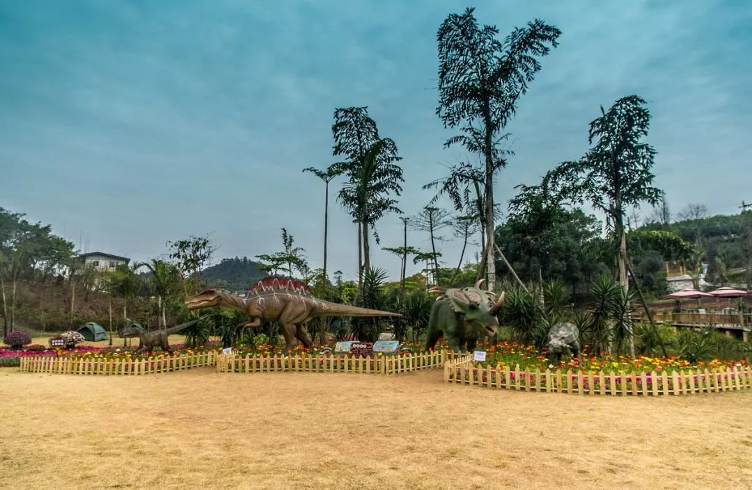 通過(guò)現(xiàn)代工藝復(fù)原的兇猛的霸王龍,溫順的圓頂龍,造型奇特的劍龍,栩栩如生地展現(xiàn)在了游人面前。游客們登上熱帶風(fēng)情園湖心島不僅能賞花觀景,同時(shí)能領(lǐng)略自貢獨(dú)特的恐龍文化。