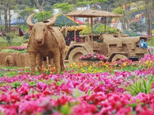 本組景點(diǎn)重點(diǎn)圍繞新農(nóng)村建設(shè)和生態(tài)循環(huán)農(nóng)業(yè)這一主題打造,包括草編的耕牛,布置鮮花的糧倉(cāng),滿(mǎn)地的瓜果造型。并積極與當(dāng)?shù)氐拇迕窆餐?a href='/hezuo/' target=_blank>合作發(fā)展,在自身規(guī)模擴(kuò)大的同時(shí),也帶動(dòng)了當(dāng)?shù)?a href='/nongmin/' target=_blank>農(nóng)民就業(yè)。游客入園不僅可以觀花游園,而且能感受到原汁原味的生態(tài)農(nóng)業(yè)并參與其中,如插秧、采摘、耕犁等農(nóng)業(yè)活動(dòng),同時(shí)購(gòu)買(mǎi)到原產(chǎn)地生態(tài)農(nóng)產(chǎn)品