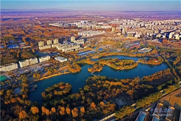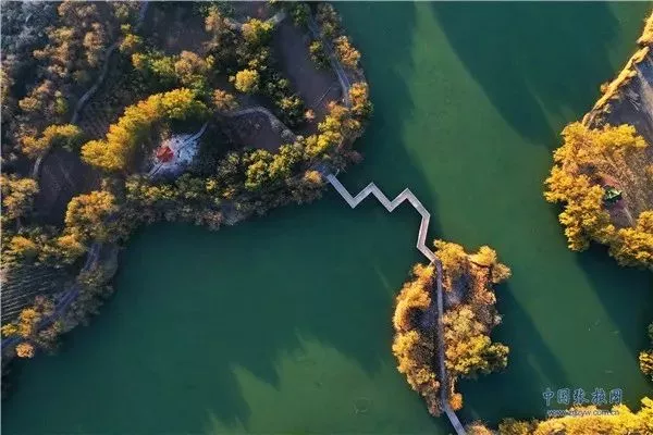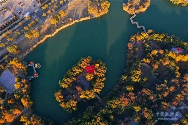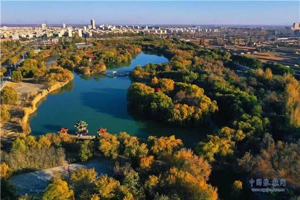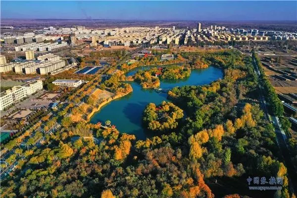 11月3日,深秋時節(jié)的張掖市高臺縣月牙湖公園,金柳垂似簾,湖面平如鏡,百米高空下俯瞰宛如一幅繪制在黑河濕地上的濃艷水彩畫卷。