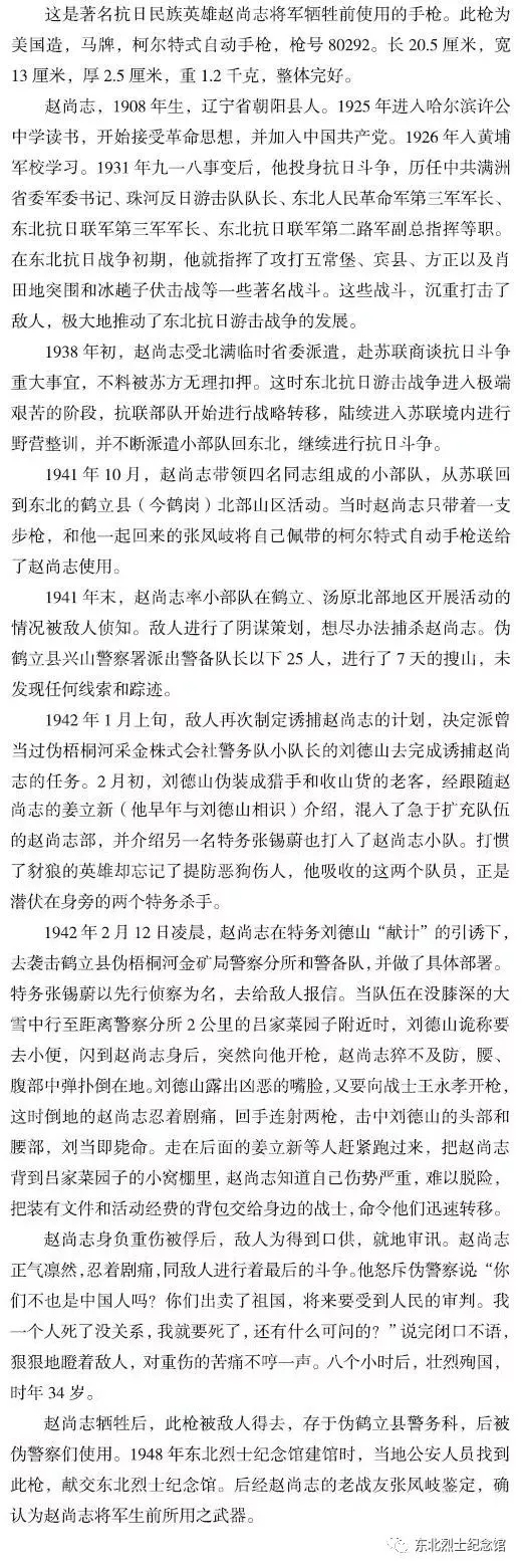 文物背后的故事】趙尚志用過(guò)的手槍
