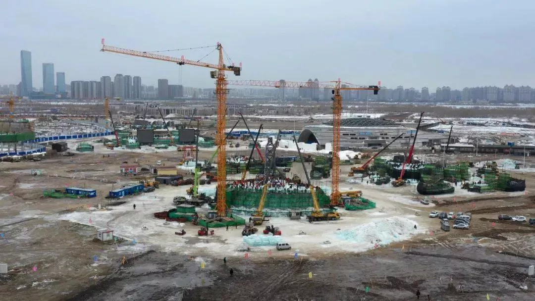 哈爾濱冰雪大世界園區(qū)正在建設(shè)中。