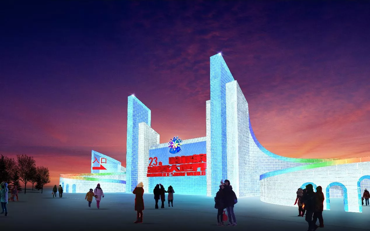第二十三屆哈爾濱冰雪大世界園區(qū)局部效果圖。