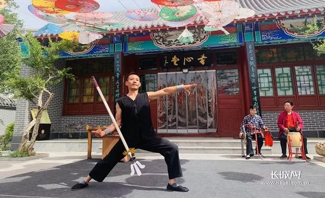 江湖文化城“彭家班”飛叉表演。長城網(wǎng)記者 段維佳 攝