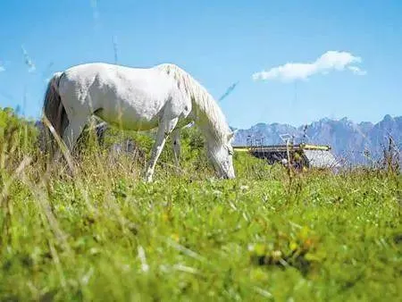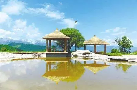 拉尕山西側(cè)有一山峰,頂上有一巨石,遠(yuǎn)遠(yuǎn)望去酷似格薩爾王的勇士騎坐眺望,石頭上古藤纏繞,如同戰(zhàn)袍的飄帶,在巨石旁有一棵參天古木,被當(dāng)?shù)厝朔Q為“降魔棒”,這就是“勇士布陣”。南山腳下有一個(gè)不大的湖泊,清澈見底,湖面如鏡。湖水冬溫夏涼,被當(dāng)?shù)厝朔Q為“圣水湖”,景區(qū)內(nèi)還搭建有小木屋、移動(dòng)帳篷供游客休閑娛樂。