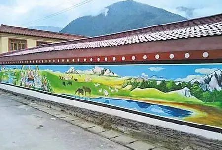 村路兩旁的壁畫栩栩如生,描繪了杰迪村的由來、拉尕山傳說、格薩爾王傳說等流傳于民間的故事以及吉祥八寶、祥瑞奇獸、藏家兒女生活的情景,純樸的民風(fēng)、悠久的民俗文化充分得到展現(xiàn),村民的精神文化生活豐富多彩。