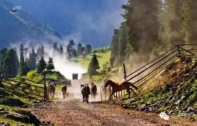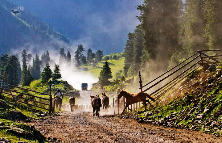 沿長約50公里的新疆伊犁昭蘇夏塔古道旅行,但見蜂飛蝶舞、鹿奔鷹翔,景物萬千,令人目不暇接。