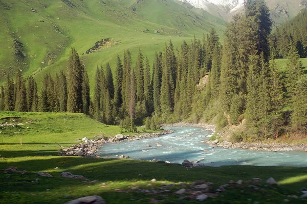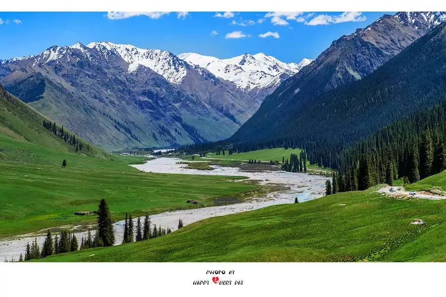 新疆伊犁昭蘇夏塔古道是一個(gè)富有傳奇色彩的新疆旅游勝地,這里瀕臨高林立的天山主脈,由崇山峻嶺中一瀉而出的夏塔河開平坦的草原,在煙波浩渺中匯入特克斯河;