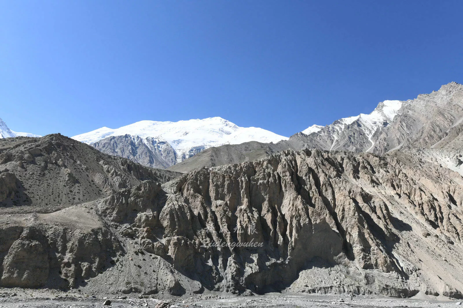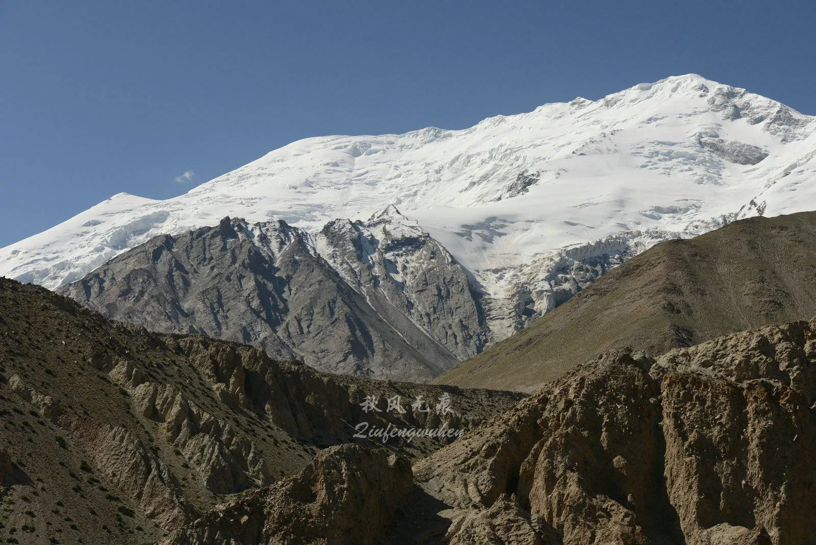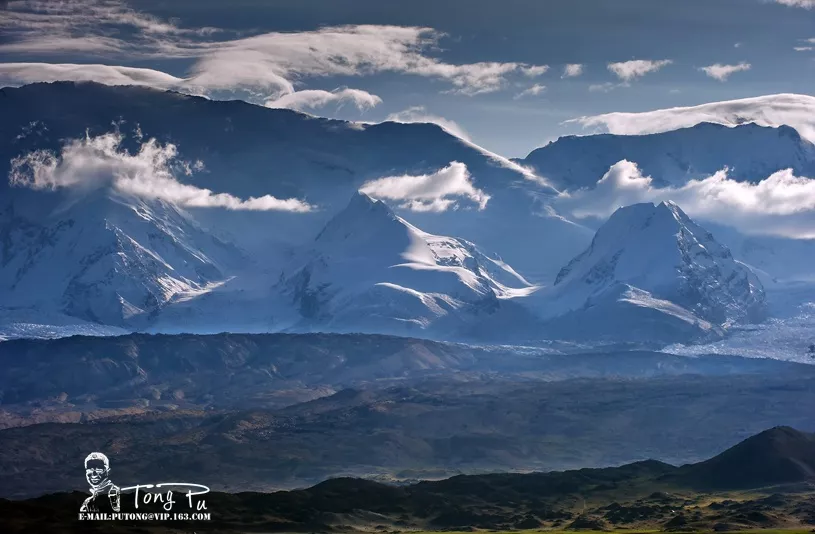 &nbsp公格爾山和公格爾九別峰同在西昆侖山脈西端山脊上,山體相連,是一對(duì)“姊妹峰”。(數(shù)數(shù)右邊的峰群,是不是九個(gè)雪峰呢?)