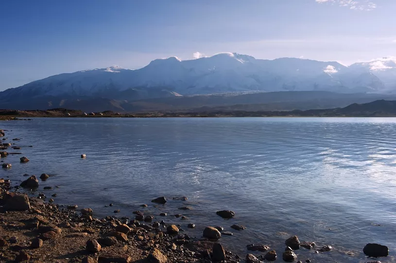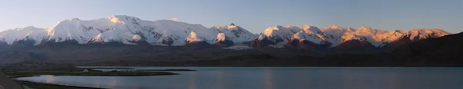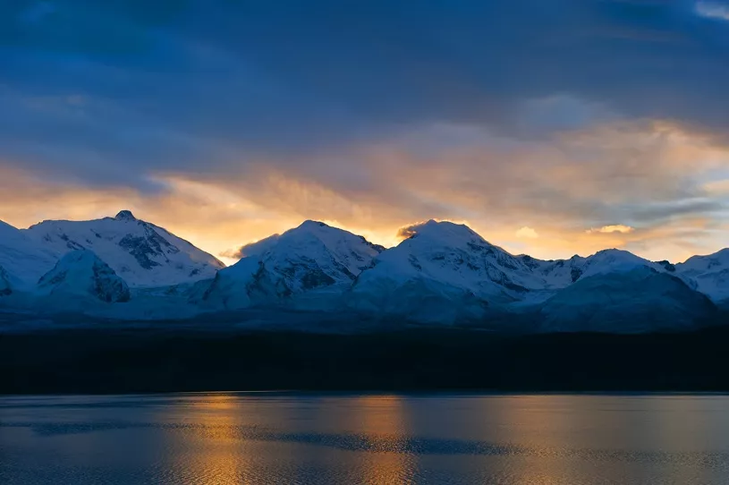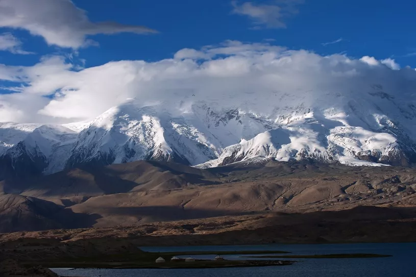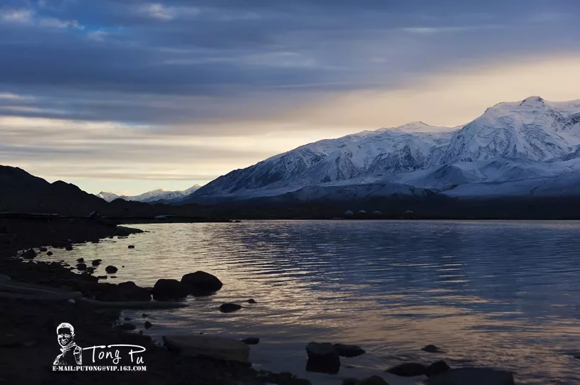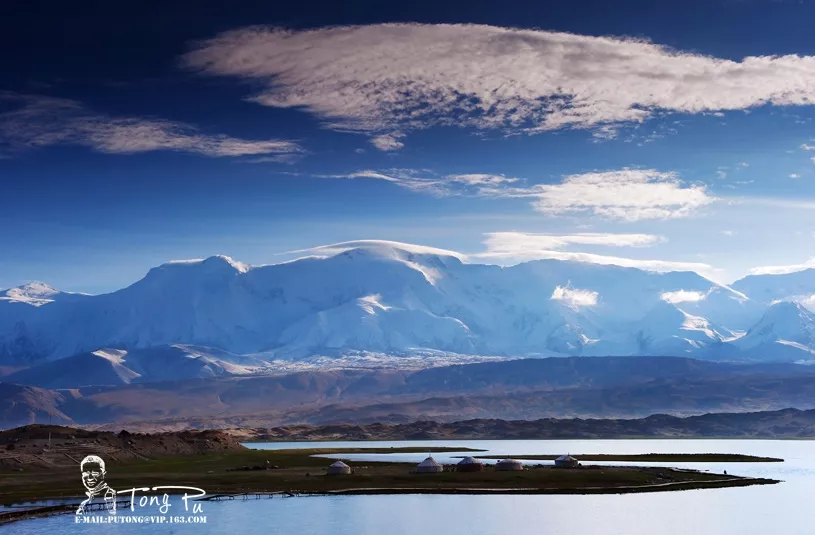&nbsp在美麗神奇的喀拉庫勒湖,你不僅可以欣賞到湖邊矗立著的“冰川之父”慕士塔格峰,而且還能觀賞到昆山上海拔最高有7649米的公格爾山和海拔7530米第二高峰公格爾九別峰。公格爾山和公格爾九別峰同在西昆侖山脈西端的山脊線上,山體相連,是一對(duì)聯(lián)抉而立的姊妹峰。公格爾山在柯爾克孜語中意為“褐色的山”,山峰呈金字塔形,峰體陡峭,公格爾九別峰因終年積雪猶如牧民頭上所戴的帽子,被當(dāng)?shù)啬撩穹Q它為“公格爾九別”, 柯爾克孜語意為“白色的帽子”。 如果喀拉庫勒湖是波平浪靜的時(shí)候,在湖畔便可看見澄澈的湖水中皎潔的冰山倒影相互輝映,天水一色美麗景觀。這種景象,相信見過的人都會(huì)難以忘懷。