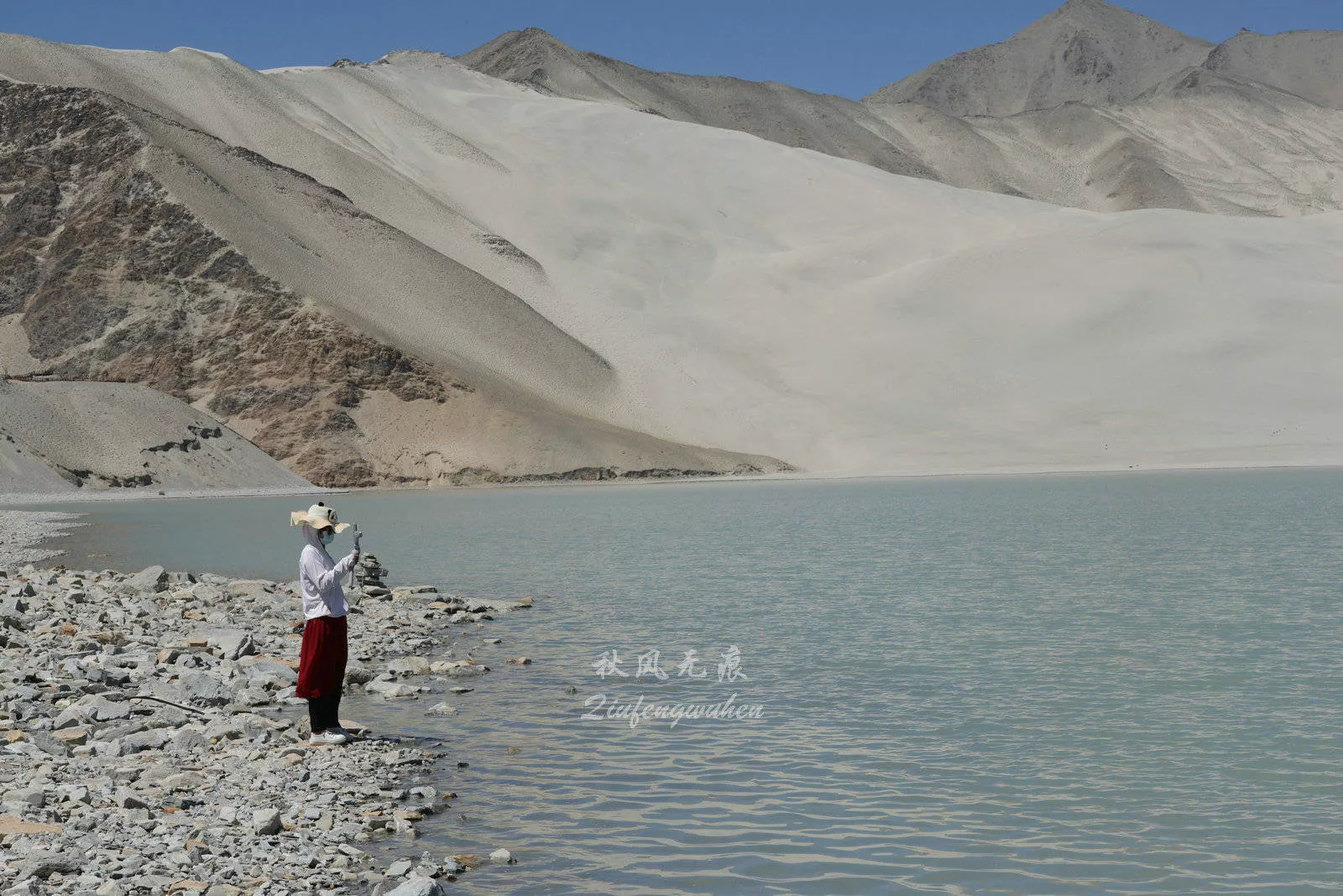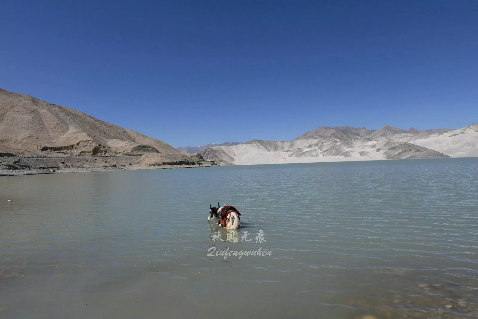 在離開喀什150公里左右,車出蓋孜河山谷,一道靚麗的湖邊出現(xiàn)眼前,湖的四周,有巍峨的公格爾雪峰,一個(gè)個(gè)白、黑相間的沙山延伸到清澈的湖面,在湖的南北兩端,兩個(gè)大型免費(fèi)停車服務(wù)區(qū),讓一個(gè)個(gè)路過的人們駐足,走近這個(gè)美麗的地方,領(lǐng)略帕米爾高原這幅大自然饋贈(zèng)的大美風(fēng)景。