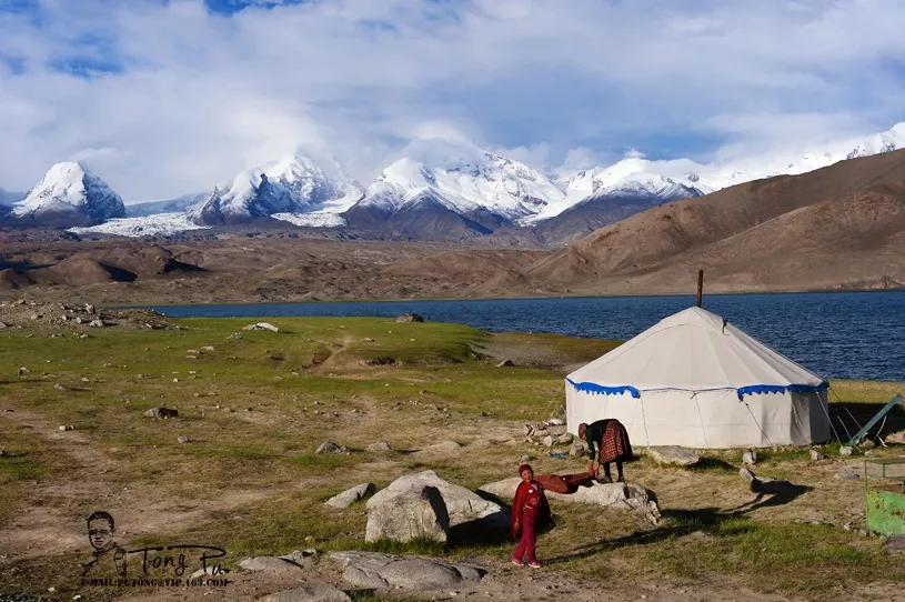 一個(gè)柯爾克孜族的小伙子回頭看著公格爾雪山。初春的喀拉庫勒湖景色,對(duì)大多數(shù)游人來講著實(shí)是太單調(diào)了些,一片不大的可以一眼望到盡頭的湖面,還有可能看到也可能看不到的湖邊上的雪山。車剛停下,遠(yuǎn)遠(yuǎn)看見我們的柯爾克孜族姑娘塔瓦爾古麗,快步微笑著向我們迎了過來。早春的帕米爾高原還非常寒冷,特別是早晚溫差特別大,所以這段時(shí)間來的游客并不是很多。有一個(gè)狂風(fēng)驟雨后的凌晨,天空倒是有些放晴了,但在太陽出來時(shí),公格爾雪山頂上的云層也很快形成,不久便沉沉的壓在雪山頂上。帕米爾高原的氣候變化更是反復(fù)無常,因此要想看見雪山的全貌,真還是需要些運(yùn)氣。每年冬季過后,住在喀拉庫勒湖不遠(yuǎn)處村子里的一些柯爾克孜族人會(huì)來到喀區(qū)從事客棧經(jīng)營,一直到十一月份冬季再次來臨才離開。在美麗神奇的喀拉庫勒湖,你不僅可以欣賞到湖邊矗立著的“冰川之父”慕士塔格峰,而且還能觀賞到昆山脈上海拔最高有7649米的公格爾山和海拔7530米第二高峰公格爾九別峰。帕米爾高原上的天氣卻是瞬息萬變,喀拉庫勒湖的小氣候更是難以捉摸,常常是一天就會(huì)有好幾種情形。柯爾克孜族小女孩湖水會(huì)隨著季節(jié)、時(shí)間、氣候不同而變化出不同的顏色。天陰下雨時(shí),湖水漆黑如墨。據(jù)說唐代高僧玄奘當(dāng)年取經(jīng)曾經(jīng)從此路過,看到這里神奇的湖水,稱這里為有巨蛟出沒的“大龍池”。美麗神奇的喀拉庫勒湖畔有豐潤草原能干的古麗不僅是客棧的當(dāng)家,要親自接待過往住宿的客人,平時(shí)還要下廚為客人做飯。喀拉庫勒湖地處海拔3600米的帕米爾高原上,因湖水深邃幽黯,得名“喀拉庫勒”,柯爾克孜語里意思是“黑湖”。太陽正緩緩從公格爾雪山方向升起,金色的陽光照射在慕博士塔格雪峰上,每一刻都在發(fā)生著奇妙的變化。喀拉庫勒湖還是一個(gè)會(huì)變色的湖泊,湖水會(huì)隨著季節(jié)、時(shí)間、氣候不同而變化出不同的顏色。