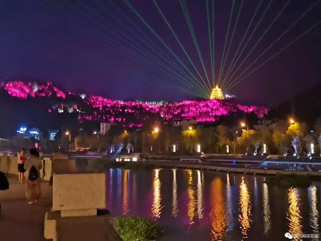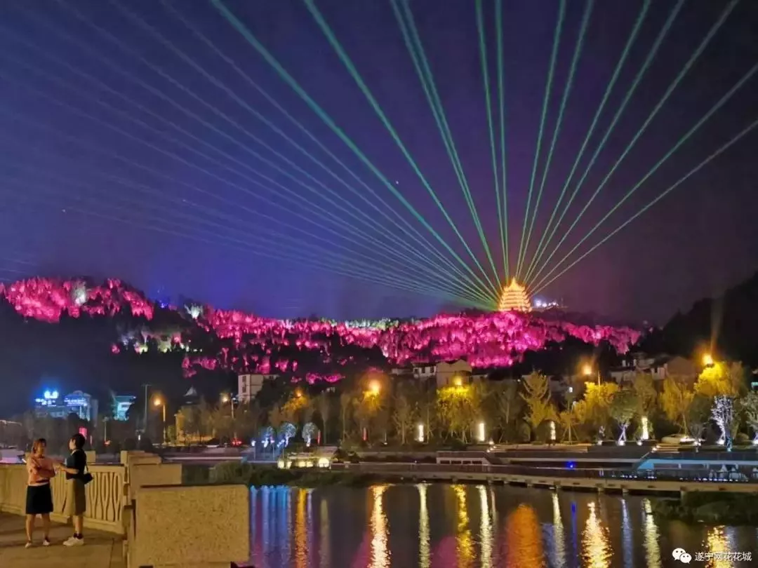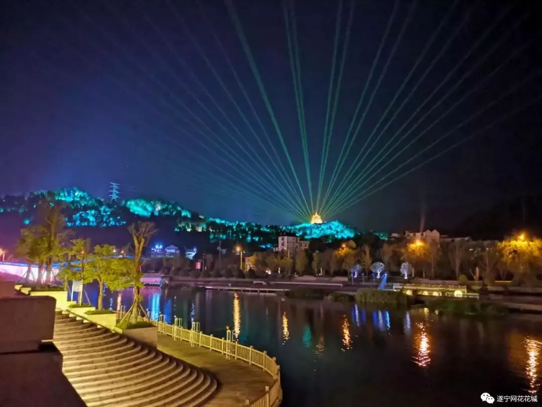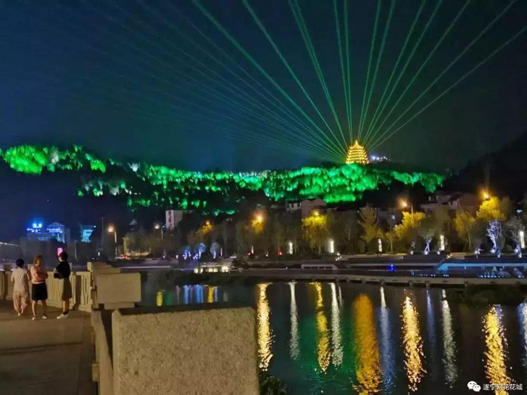 大美“夜遂寧”!靈泉寺山體亮化后的效果猶如仙境。