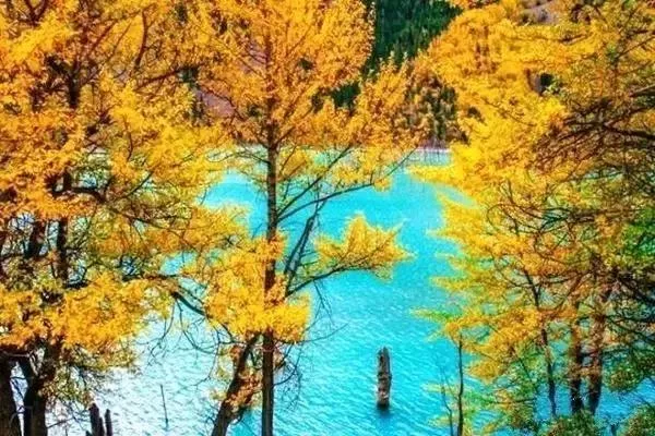 成片的楓葉將這塊寶石般的圣水包圍