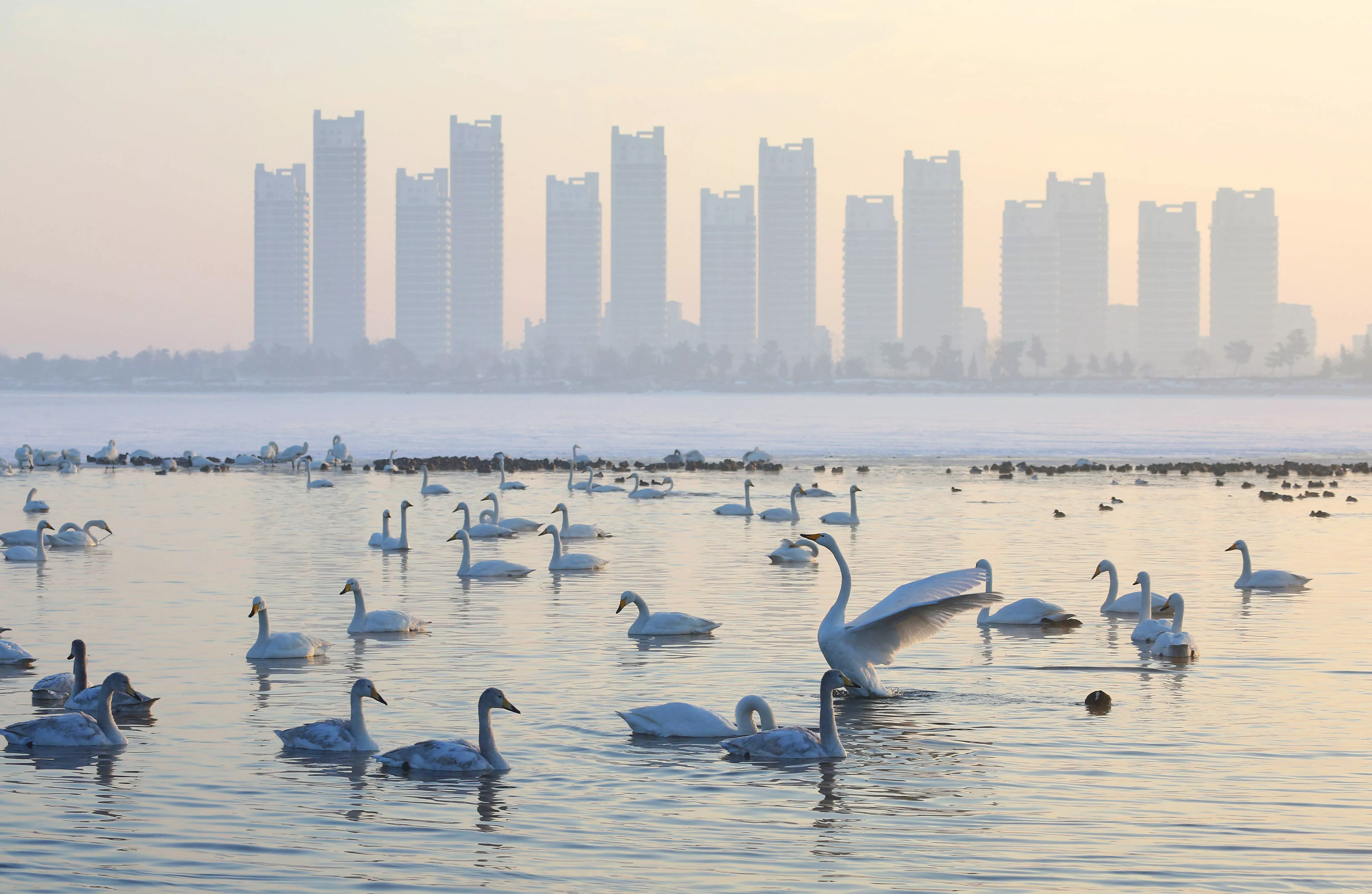 山東榮成是“中國大天鵝之鄉(xiāng)”,是亞洲最大的大天鵝冬季棲息地,設(shè)有國家級(jí)大天鵝自然保護(hù)區(qū)。每年11月至次年4月,上萬只大天鵝從西伯利亞、蒙古等地來到榮成越冬棲息,這些美麗而矯健的凌波仙子在榮成追逐戲水,凌空翱翔,翩翩起舞,與海草房交集的綿綿童話吸引著游客們,榮成因此又有“東方天鵝王國”的美譽(yù)。大天鵝對(duì)生態(tài)環(huán)境有著極為苛刻的要求,榮成為大天鵝提供了優(yōu)良的棲息環(huán)境,充足的食物來源、科學(xué)的保護(hù)措施,榮成市內(nèi)處處都是天鵝的樂園,“城市會(huì)客廳”櫻花湖體育公園、“天鵝村”煙墩角、“天鵝湖”好運(yùn)角、“日出天鵝拍攝地”華星賓館和車祝溝村、“石島灣”桃園旅游度假村海灣等地都是觀賞天鵝的最佳地點(diǎn),看天鵝、寫天鵝、畫天鵝、攝天鵝、唱天鵝蔚然成風(fēng),帶動(dòng)了榮成冬季大天鵝旅游熱潮。