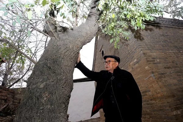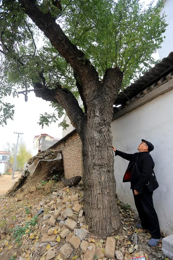 村里有兩棵老槐樹,董云嵐教授在認(rèn)真考察一棵古槐,斷定年代,據(jù)董教授認(rèn)為這棵樹年齡在200年左右。