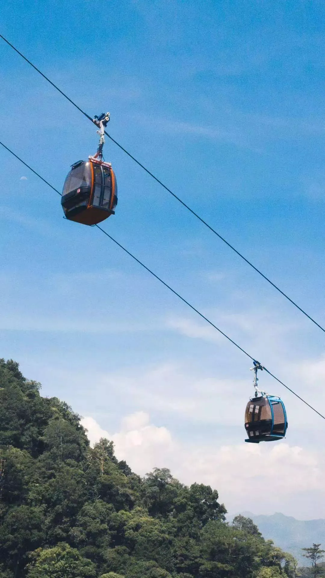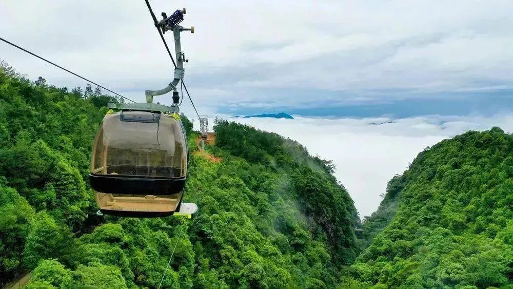 索道總長度為7168米,是目前亞洲第二長、國內(nèi)跨度最大和坡度最大的索道,高差達(dá)1088米,單程運行時間大概需半個小時。游客坐在纜車?yán)?,瀑布、竹?a href='/meijing/' target=_blank>美景映入眼簾,向下俯視,盤山公路盡在腳下。