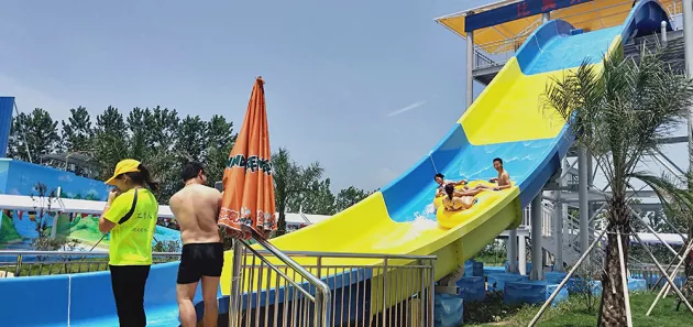 U型大滑板的滑道,4個人一組坐在浮圈上,從設備的最高處快速滑道最底部,然后借著巨大的慣性,繼續(xù)向上滑行到幾乎呈 90 度上揚角度的滑道上,然后再從幾乎垂直的滑道上借著地心引力自由滑落到平緩的地段。在整個滑行過程中,坐在浮圈里的人們除了感受上上下下的刺激之外,浮圈還會在滑道里自行旋轉(zhuǎn),十分刺激!