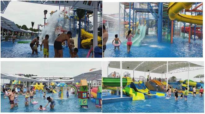 有14個游樂項目:由眾多盤旋而上的階梯和滑道組成的中型互動水寨、有許多色彩繽紛的卡通人物的兒童戲水小品池、兒童沖天回旋滑道、兒童小碗滑道,在碧波蕩漾的水池中各種玩水活動適合全家出動。