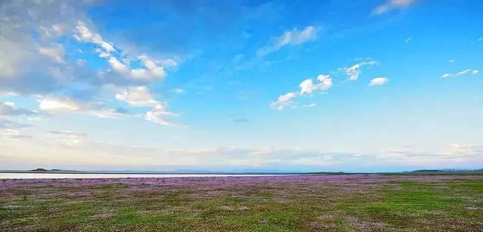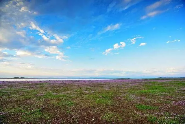 枯水季節(jié)是一片湖洲,遼闊的洲頭,綠草如茵,就象鋪上了望不到頭的綠色地毯,寬闊的草灘上盛開了無數(shù)的小花,一望無際。