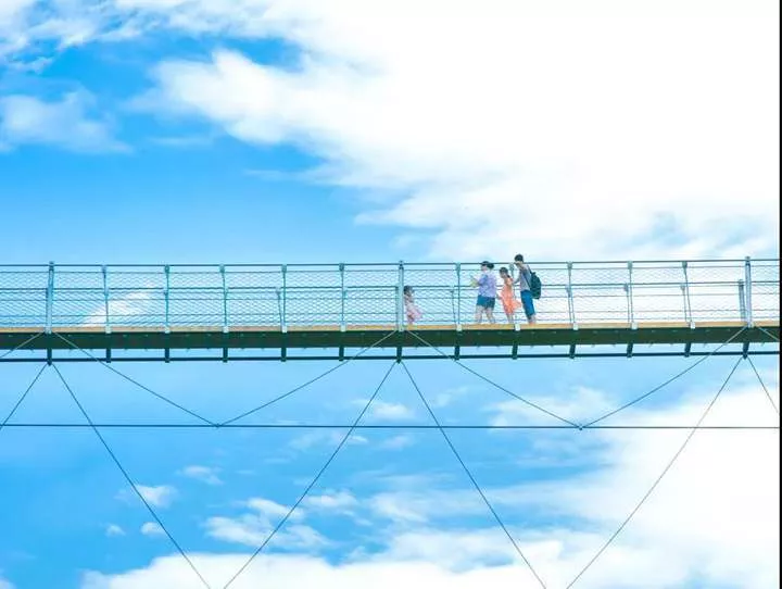自山巔垂下的吊橋如利劍般刺入挑戰(zhàn)者的心臟,挑戰(zhàn)者需要莫大的勇氣才能邁出第一步而退縮,習習微風吹的吊橋微微搖晃,看向52米下的碧波難免會產(chǎn)生恐懼腿軟,如果你膽子夠大,站在吊橋中間的景色絕對會讓你不虛此行,站在吊橋中段,遠眺而望是520米的巨石頂峰龍頭峰,環(huán)顧四周映入眼簾的是青山石林,樵夫之路,俯視而下是碧波微起,美不勝收!