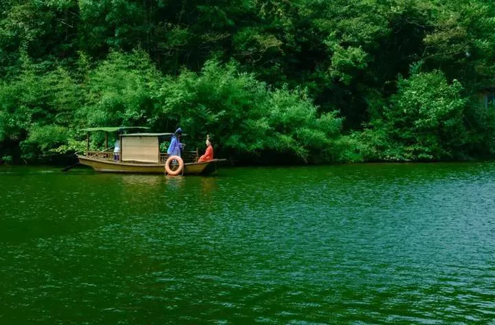 湖面一葉扁舟,沿著索道順路往下前行,即可到達。