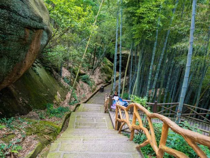 沿著碧#蓮池環(huán)繞,走到主景區(qū)入口,映入眼簾的是石階竹海,