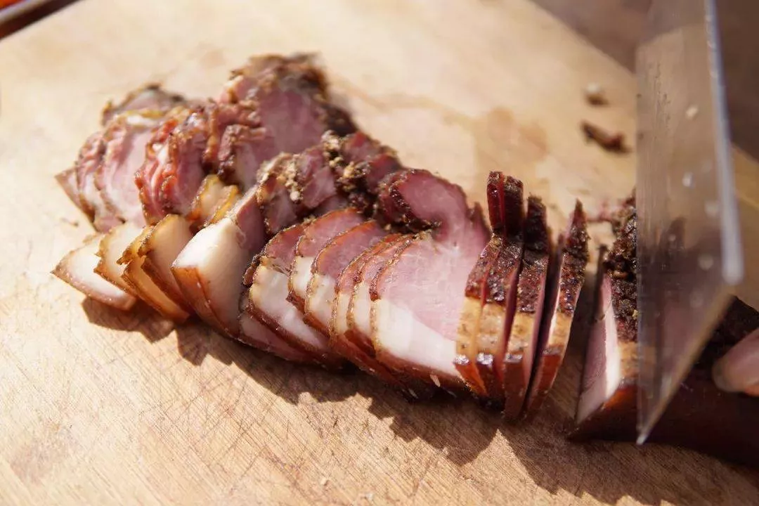 村里上好土豬肉買回來熏制的果香臘肉,特別香