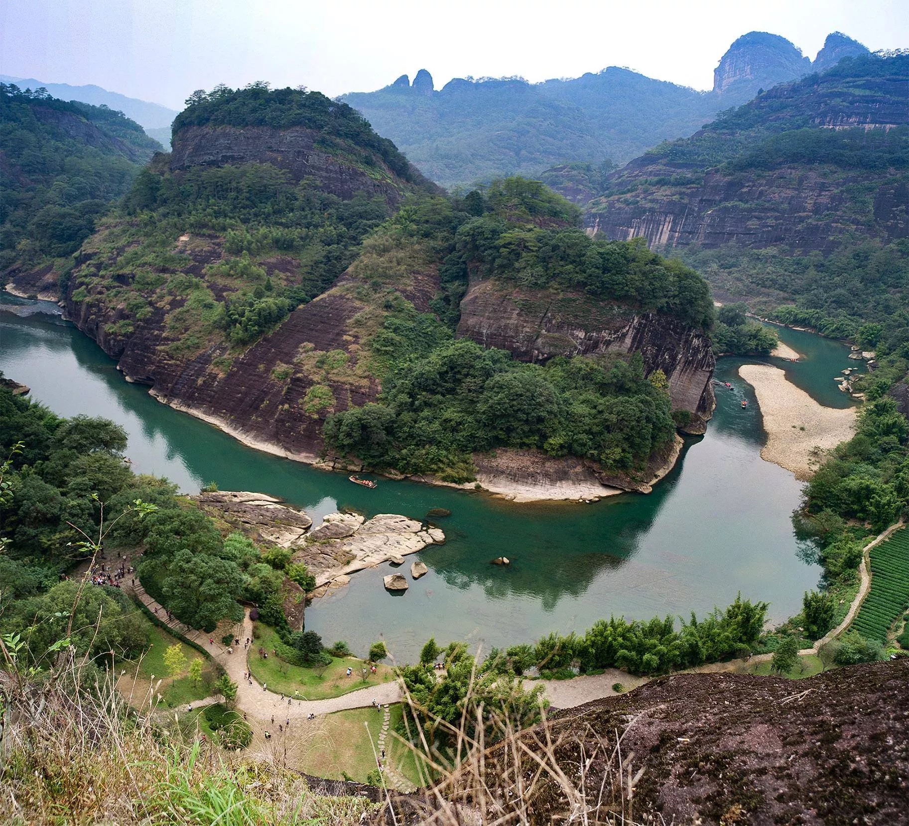 九曲溪位于武夷山風(fēng)景區(qū),之所以叫九曲溪,是因?yàn)檫@條溪彎彎曲曲的,經(jīng)星村入武夷山,折為九段,分為九曲。九曲溪從西向東,蜿蜒自如,可謂曲曲含異趣,灣灣藏佳景,其中“四曲”就是《西游記》拍攝小白龍出世的地方。一般游覽的主要方式是九曲溪漂流,乘坐竹筏泛溪觀賞山景。乘竹筏從星村順流而下,或從武夷宮拾階而上,只半天時(shí)間,可覽盡山光水色,意趣無(wú)窮。